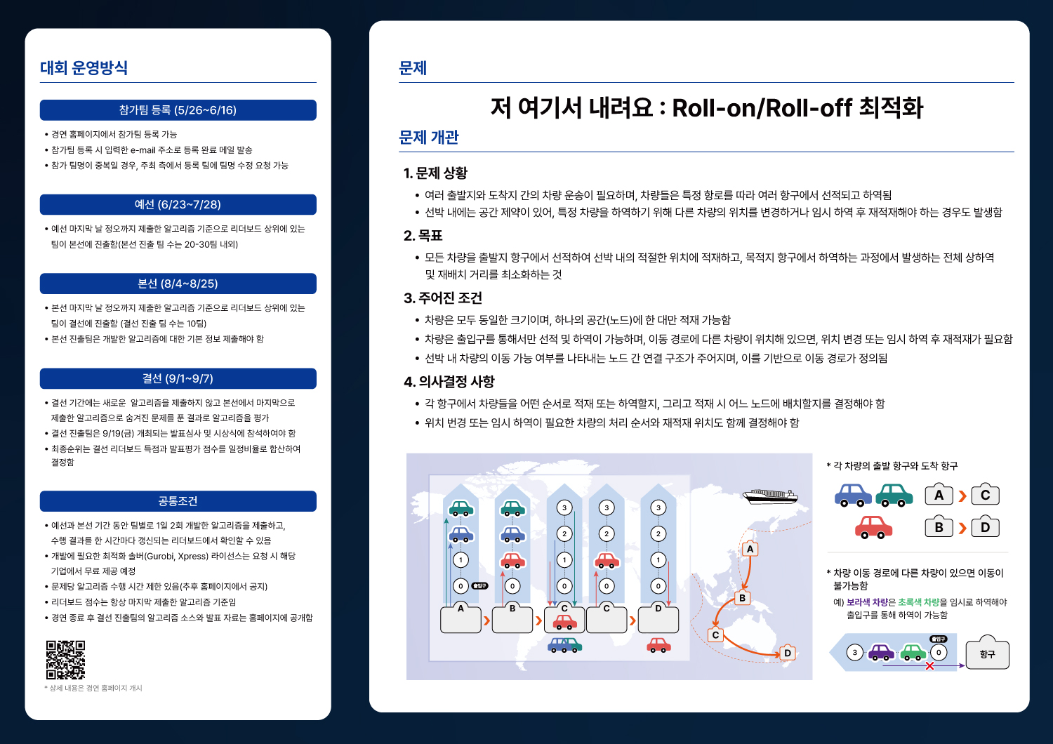 최적화 문제 해결을 통한 창의적 사고와 실무 역량 강화를 목표로 하는 본 경연에 관심 있는 분들의 많은 참여 바랍니다.