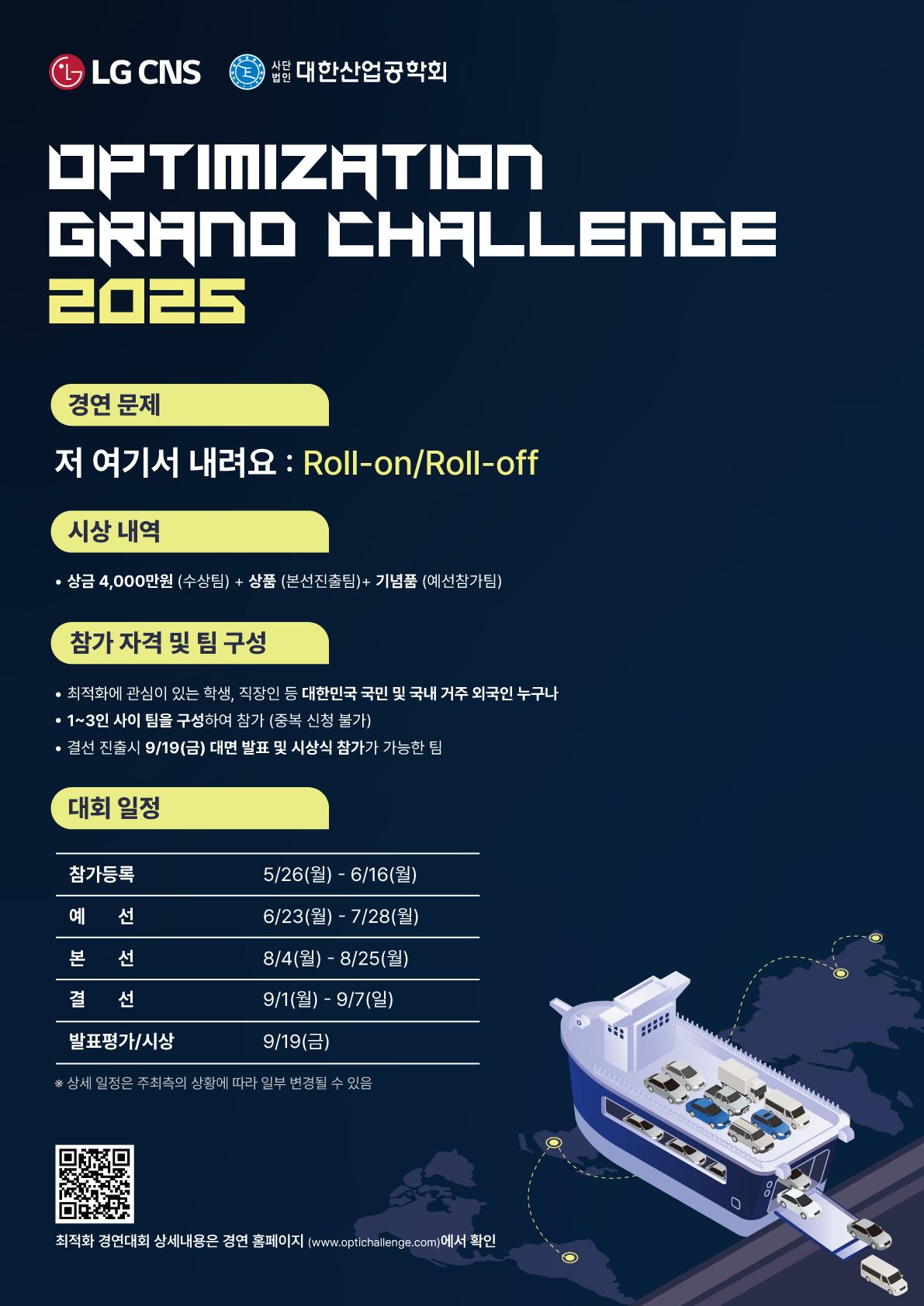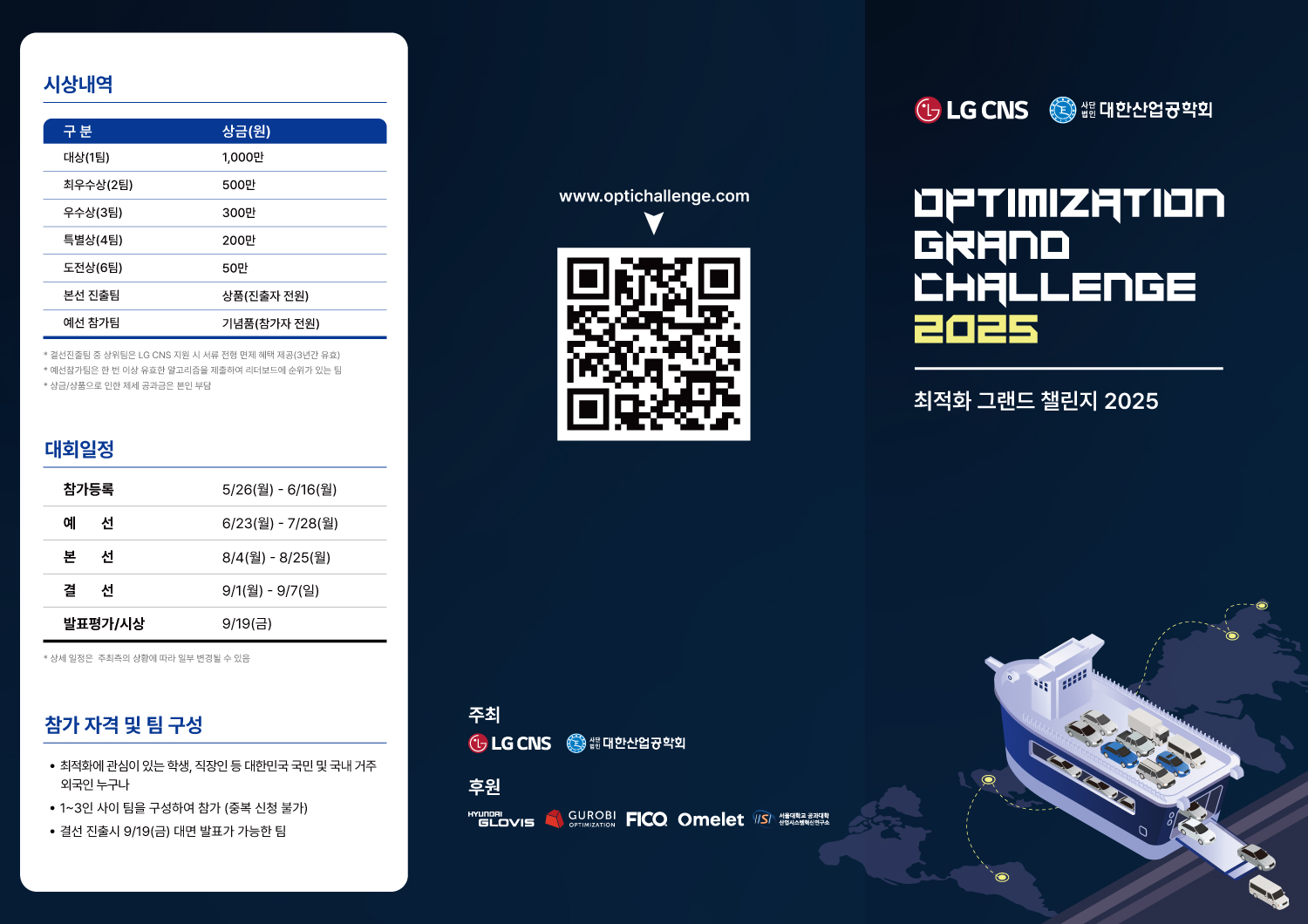 LG CNS와 대한산업공학회가 공동 주최하는 2025 Optimization Grand Challenge가 개최됩니다.