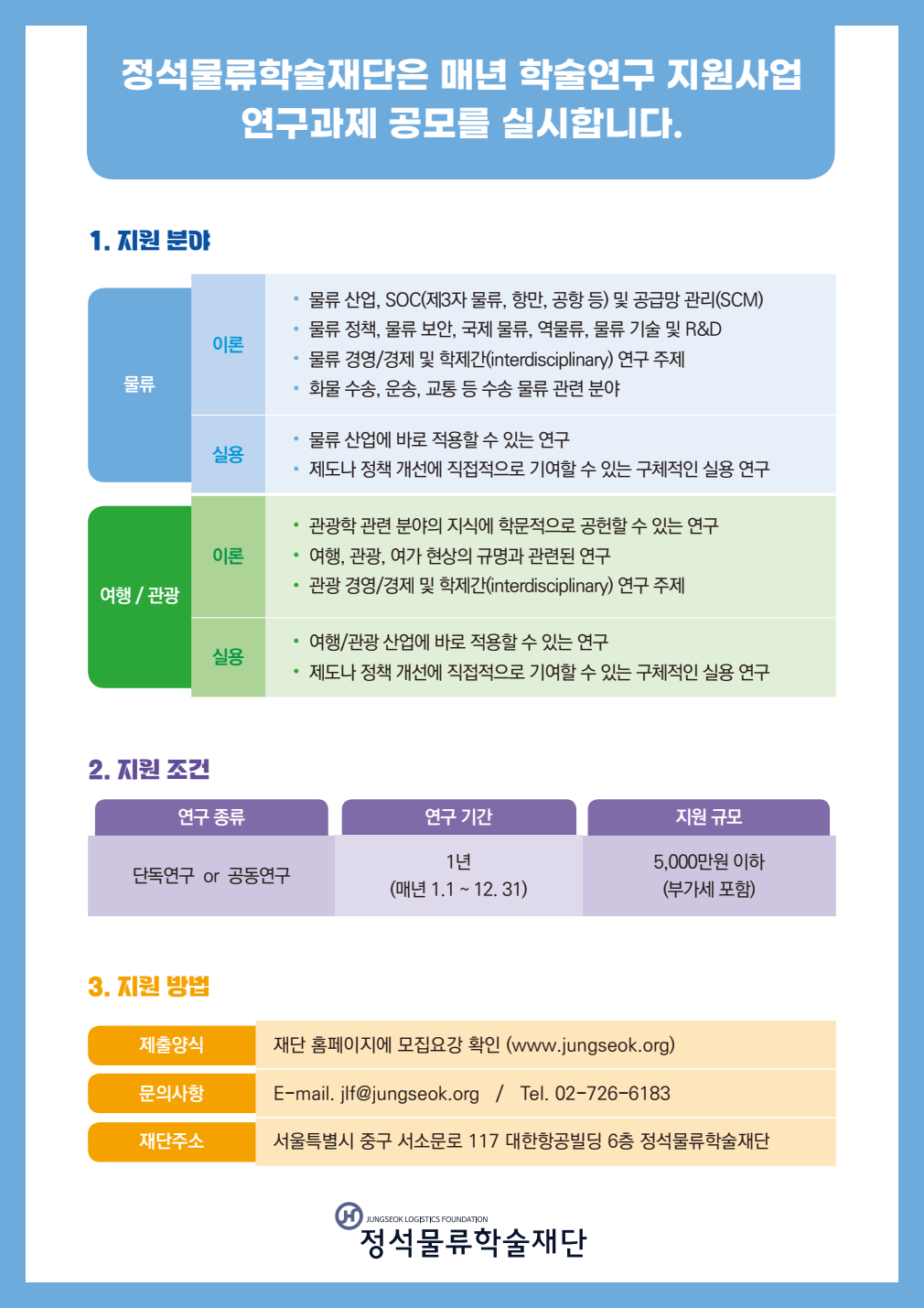 [정석물류학술재단] 학술연구 지원사업 연구과제 공모 안내